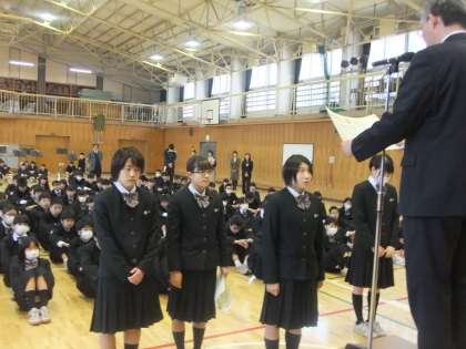 修了式 公開日 2014/03/25 更新日 2014/03/25 学校行事 3/25(火)平成25年度の修了式を実施しました。3年生が卒業し、2週間後には新入生が入学します。新2・3年生になる生徒の諸君には、駒込中の伝統を守って、良き先輩(後輩にとって逞しくも優しい先輩)として活躍して欲しいと願っています。 表彰:東京都美術展覧会出品(美術・技術・家庭・書写の各作品) :豊島区教育委員会児童生徒表彰(水泳部) :英検合格者(準2級2名 他35名) いいね(0)