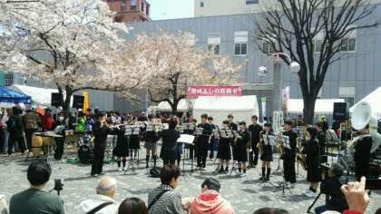 吹奏楽部が桜祭りで演奏しています