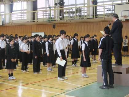 5/12(月)大野校長先生より:連休も終わり、学校生活のペースを早く取り戻すこと。(通勤時に見聞したことを例に挙げて)自分が知らないまま正しいと思い込んで行動したり、人に接すると、相手を知らない内に傷つけていることがある。いじめに繋がることもあるので、何が本当に正しいかを常に確認することが大切である。