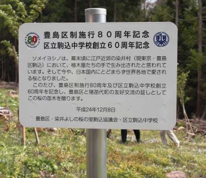1年半前に、復興支援の一環として、猪苗代町に駒込の桜を贈呈するという企画がありました。その植樹祭に、区長さんたちとともに駒込中学校の代表生徒も参加しました。