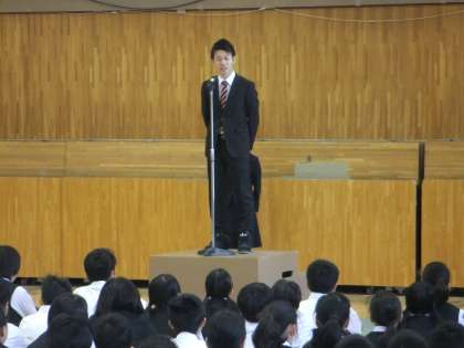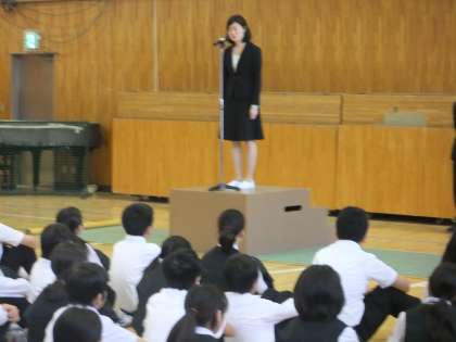 5/19(月)朝礼にて、2名の教育実習生の紹介を行いました。八木彰子先生「日本女子大学からきました。八木彰子(ヤギアキコ)です。数学を担当させていただきます。よろしくお願いいたします。」 関仁允先生「この度、社会科を担当させていただくことになりました関仁允(セキマサチカ)です。実習期間を通し、生徒との和を学んでいきたいのでよろしくお願いいたします。