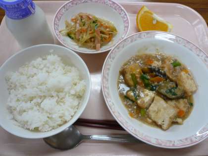 今日の豚肉と厚揚げの味噌炒めは、白味噌を使用し、甘めの仕上がりとなりました。辛いのが苦手な子には好評でしたが、ピリ辛も食べたいとの声もあったので、次回はピリ辛味にしようと思います。春雨サラダはさっぱりとした味付けで毎回人気で、今日もどのクラスもよく食べてくれました。