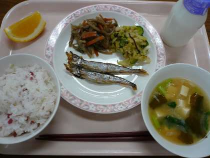 今日の給食は梅雨にぴったりのカリカリ梅とじゃこご飯でした。国産のカリカリ梅とから煎りしたじゃこを混ぜています。さっぱりとした味わいで食感を楽しみながら食べてくれていました。五目きんぴらは、はす・ごぼう・糸こんにゃく・にんじん・いんげんを歯ごたえが残るように炒めました。