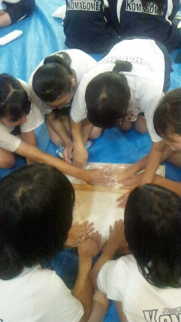 のばすのは力のある男子が得意のようです。だんだん薄くなりました。