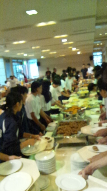 夕食のバイキングです。さっきうったうどんもいただきます。自分の手作りうどんは美味しかったですか?