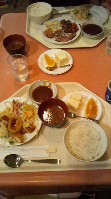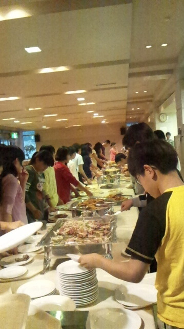 夕食、バイキングです。たくさん歩いたので、たくさん食べましょう。