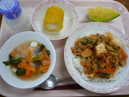 今日は今が旬のとうもろこしでした。八百屋さんが生で食べても甘いとうもろこしを持ってきてくれたので、「甘くておいしかった」という声がよく聞こえました。とうもろこしは6〜9月が旬で、とにかく鮮度が落ちやすいので、買ってきたらすぐに茹でるか蒸しておいしさを逃さないようにするのがポイントです。