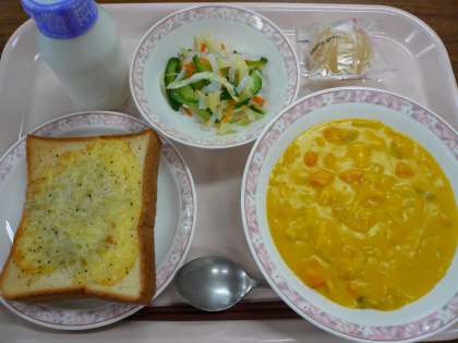 今日のトーストは、しらすとチーズをのせて焼きました。「意外な組み合わせだったけど、おいしかった」という子もいました。今日も暑い日だったので、冷凍ピーチは大人気で、どのクラスも完食していました。
