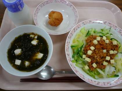 タコライスは、メキシコ料理のタコスが原型で、ライスの上にタコスの具をのせた沖縄発祥の料理です。給食では生トマトをのせる代わりに、ひき肉と一緒にトマトを煮込み、タコミートを作りました。アーサー汁は、「あおさ」が入った汁物で、沖縄ではあおさの事をアーサーと呼ぶことから、このように呼ばれています。サーターアンダギーは沖縄のドーナッツで、「サーター」は砂糖、「アンダギー」は「アンダ(油)」「アギー(揚げる)」を意味しています。給食室で1つ1つ丸め、手作りをしましたが、どのクラスもお代わりじゃんけんをしながら、よく食べてくれていました。