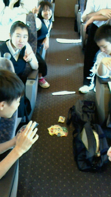 新幹線車内では、UNOをしていたり、寝ていたり様々です。