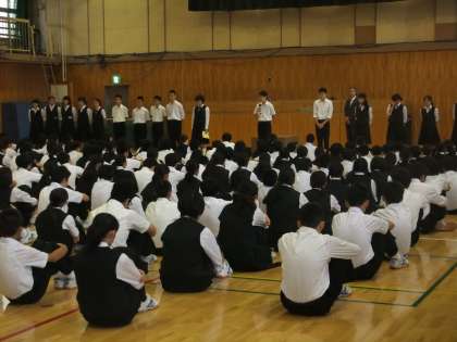 10/7(火)昨日は、台風18号のため休校でしたので、本日の朝礼で後期生徒会役員の認証式を行いました。役員の皆さんの活躍を期待しています。