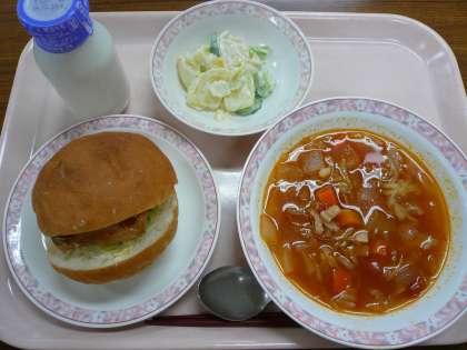 今日は人気メニューの照り焼きチキンバーガーでした。甘辛いたれに漬け込んだ鶏肉とキャベツの相性も良く、お代わりを狙っている人もいました。