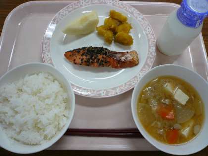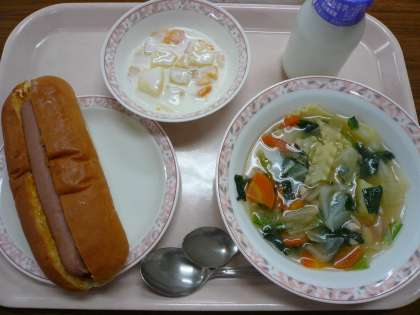 今日の果物はラフランスでした。ラフランスは、収穫したときには身が固く、甘みもありません。収穫後に常温で10日ほど追熟することでデンプンが分解され、甘みが増し、おいしくなります。旬は、11月上旬から中旬にかけてで、今日は山形県産の食べ頃のラフランスを八百屋さんに納品していただきました。