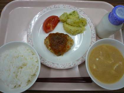 今日は駒中リクエスト給食・おかず部門1位の和風ハンバーグでした。豚肉・鶏肉・豆腐・人参・玉ねぎをよく練り込んでおり、具沢山でふっくらとしたハンバーグです。お代わりじゃんけんで盛り上がっているクラスもありました。