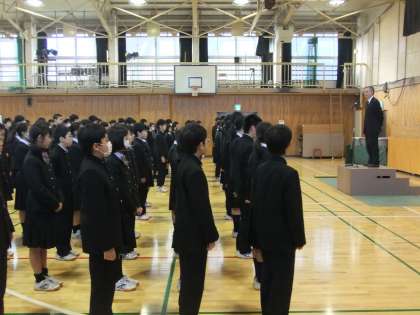 1/8(木)大野校長先生より:3学期は、次へのステップの大切な期間です。3年生は進路に向けて真剣に取り組むこと。2年生は最上級生としての責任を果たせるようになること。1年生は駒中の先輩として手本を示せるようになることを自覚して日々を送ること。