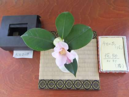 茶道部顧問の杉下先生が、ほぼ毎朝職員室前の廊下にご自宅のお花を飾ってくれています。今朝は椿(侘助)です。