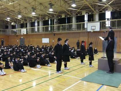1/19(月)大野校長先生より:3年生はいよいよ入試です。今まで頑張ってきた成果を存分に発揮するように。「一念岩をも徹す」即ち、強固な信念、至誠で事に当たれば、いかなることも成し遂げることができる。このことを念頭に置き、努力を積み重ねて希望を叶えよう。