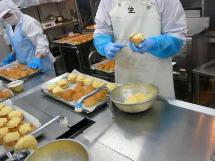 今日のビスキュイパンは、ミルクパンの上に手作りのビスケット生地を塗り、こんがりと焼き上げました。オーブンを開けたときには、甘い香りが広がりました。サクサクとした食感の甘いパンに仕上がりました。