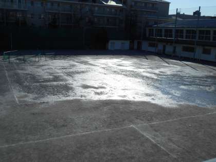 1/29(木)10:30 毎年この時期の校庭は、ほぼ一日中、体育の授業や昼休みに遊ぼうと思っている生徒たちにとって残念な状況です。