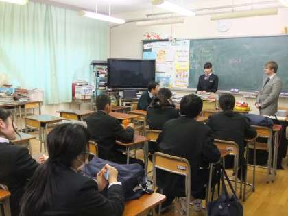 友達が指示した物(者)に対して、英語で説明しています。言葉に詰まると外国人講師の先生がやさしく教えてくれています。部員の英会話力はめきめき向上しています。