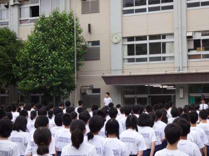これまで体育の授業などで少しずつ取り組んできましたが、全校生徒での全体練習や放課後練習、朝練習などは今日からです。