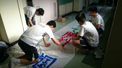 運動会 練習風景取材<その2> 〜PTA広報部〜 公開日 2015/05/25 更新日 2015/05/25 PTA 組体操とダンスの練習終了後には、各クラスでクラスボードの作成や、実行委員の皆さんがスローガンの垂れ幕を作成中です。 今年の運動会はどんなクラスボードや垂れ幕に仕上がるでしょうか? ご期待ください。 いいね(0)