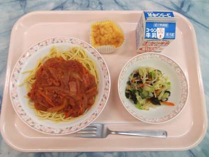 ツナトマトスパゲティーは、ツナとトマトをたくさん使用した酸味のきいたスパゲティーです。駒中では定番です。トマトソースがたくさんかかります。チーズケーキは生クリームとクリームチーズをたくさん使用し、しっとりして濃厚な仕上がりになりました。よく食べていました。クリスマスも近いので、クリスマスを少し意識した食べやすい献立にしました。