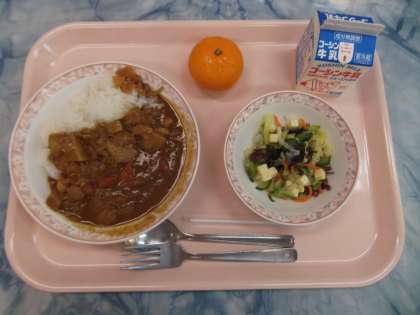 本日より3学期の給食がスタートしました。皆さんの好きなカレーライスよりスタートです。手作りカレーライスには、ひよこ豆も入ります。きちんと食べられていました。今学期も、安心・安全、おいしい給食提供業務に努めます。どうぞよろしくお願いいたします。