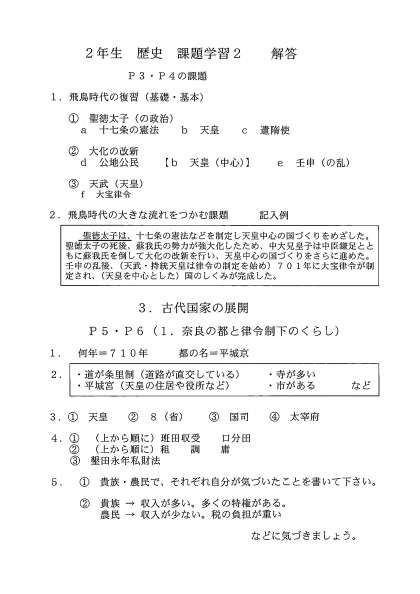 2年生の皆さん、こんにちは。休業中の課題の取り組みは順調に進んでいますか。さて、今回は課題のP3〜P10までの解答をUPしました。参考にしてください。次回は5月28日(木)に課題の最後までUPします。健康に気をつけて学習に励んでください。