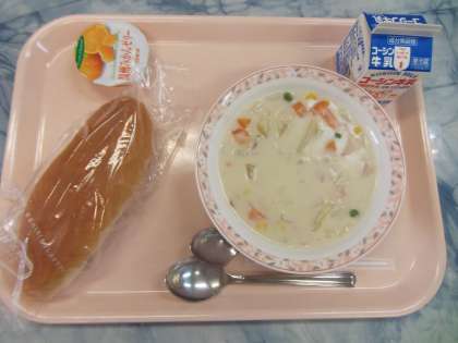 ホワイトシチューにはコーンも加え、コーンからの甘みをほんのり感じられるシチューに仕上がりました。ほんのり甘いミルクパンと一緒に頂きます。食べやすいメニューでした。