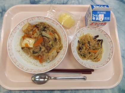 家常豆腐とは、生揚げと野菜のピリ辛味噌炒めで、白いご飯とよく合うので丼にしました。生揚げ、豚肉、たくさんの野菜を使用するので、栄養的にも優れた一品料理です。豆板醤をきかせた味噌味が、白いご飯を進めてくれました。春雨ソテーは春雨の他に、もやし、ピーマン、人参、きくらげ、ハムなどが入った具だくさんな中華ソテーです。こちらも、白いご飯によく合いました。
