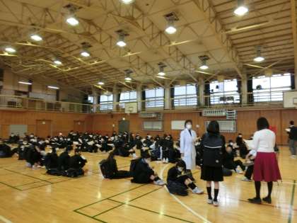 新2・3年生は登校後、体育館にて新クラスの発表です。
