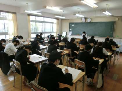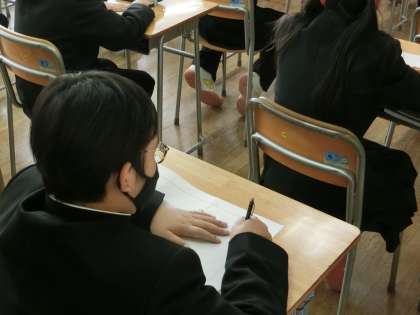 2年生は「春休み明けテスト」の真っ最中。5時間目は「数学」に取り組みました。