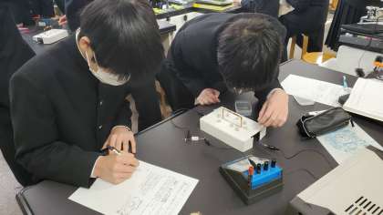 今年最後の授業は理科でした。導線・コイルに電流を流したとき、そのまわりにはどのような磁界ができるのかを調べる実験を行いました。Chromebookを利用して、結果を記録しました。3学期の始業日に実験レポートを回収します。しっかり考えて取り組みましょう。
