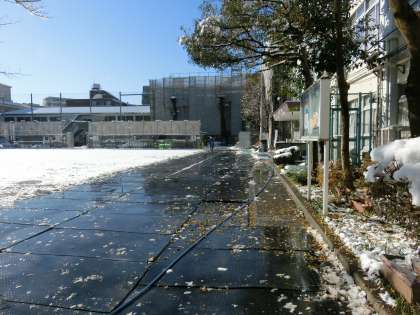 朝から除雪作業です。現在、駒込中学校で行っている外壁塗装や非常階段改修の工事関係者の方々も手伝ってくださいました。