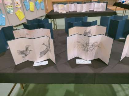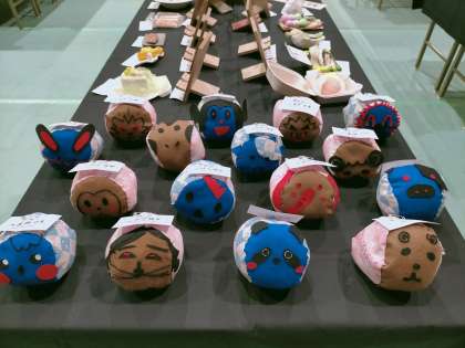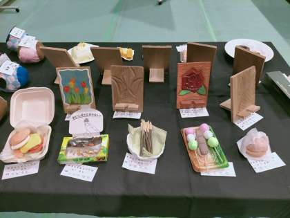 1年美術、3年美術、2年家庭科、3年美術の作品
