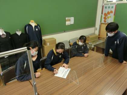 その前に、「今週の反省」。朝の週番活動で取り組んでいる挨拶運動で、「声を出して挨拶を返してもらえなかった生徒がいた」と残念がっている週番の生徒がいました。みんなが選んだクラス代表の生活委員です。全校生徒でその活動を支えていきましょう。