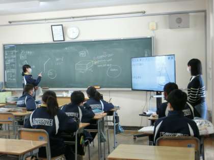 生徒が前に出て、表面積の求め方を説明していました。