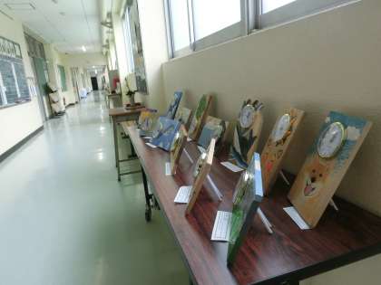 2年生の美術の時間に作成した作品(一部)が、2階の廊下に展示されています。