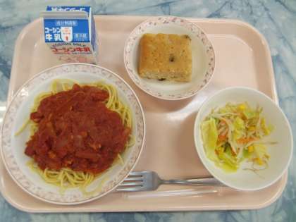 3月9日の給食 公開日 2022/03/09 更新日 2022/03/09 給食 ツナトマトスパゲティー フレンチサラダ 黒糖とレーズンのケーキ 牛乳 ツナトマトスパゲティーは、ツナとトマトをたくさん使用して作る、ヘルシーなスパゲティーです。トマト味の料理は生徒は好きなようです。黒糖には、ビタミンやミネラルが含まれています。黒糖の風味のついたケーキもよく食べていました。黒糖やレーズンには、疲れをとる効果があります。 いいね(0)