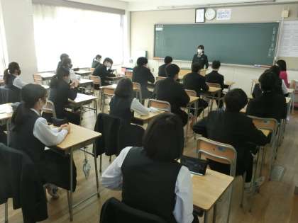 第1校時は、教科書配布とともに、新しいクラス新しい仲間の前で自己紹介等をしていました。