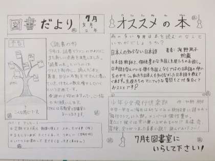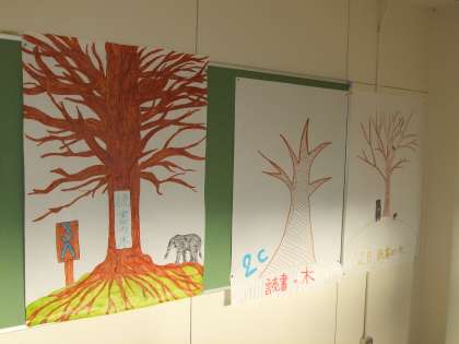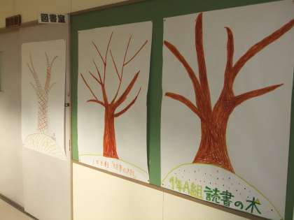 各クラスの〈読書の木〉が図書室の壁面に用意されました。緑の付箋に読んだ本と著者、読んだ人の名前を記入して枝に張り付けます。今はどれも枯れ木のようですが、本をたくさん読んだクラスの木は青葉を茂らせて、今の季節に相応しい様相になることでしょう。