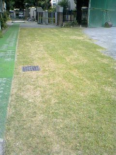 (環境教育の一貫としての芝生の生育も良好。)