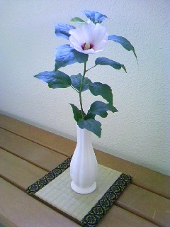 8月27日(月) ・第二学期始業式 猛暑にもめげず咲く槿(むくげ)の花が生徒たちを迎えました。