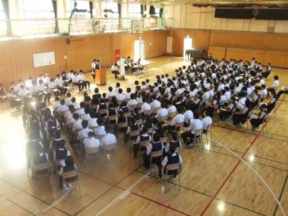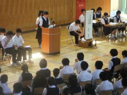 8/31(金)6校時 全校生徒を前にして、生徒会役員立候補者による立会演説会が行われました。さすが駒中生。どの候補者も自己のPRと公約をしっかり表明しました。