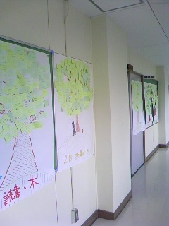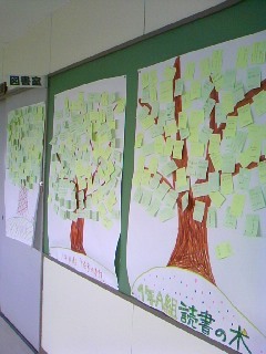 9月11日(火) ・夏休み中に沢山の本を読み、どのクラスも付箋(葉っぱ)が鈴なりになりました。