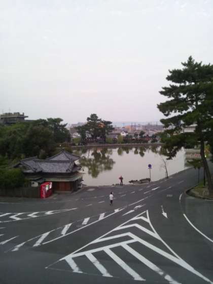 おはようございます、もうすぐ起床時間です。 朝の猿沢池、天気はくもりです。