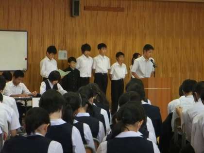 10/9(火)5・6校時 生徒総会を行いました。生徒会役員や各委員会に多くの質問が寄せられて、真剣な質疑・応答があり、予定の時間を大きく上回ってしまいましたが、「駒込中をもっとよくするために」の気持ちが会場にあふれ、礼儀正しさの中にも白熱したすばらしいコミュニケーションの姿を示してくれました。ご参観下さった保護者の皆様も感心して下さいました。