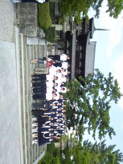 法隆寺で最初の集合写真を撮りました。