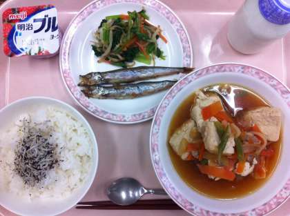 今日は、2・3年生の骨密度測定がありました。給食ではカルシウムたっぷりの献立にしました。カルシウムの推奨量は、中学生男子1000mg、女子800mgとなっており、給食では420mg摂れるよう献立をたてています。カルシウムを多く含む食品には、牛乳・乳製品、小魚、大豆・豆製品、青菜、ごま、ひじきなどがあります。ぜひご家庭でも積極的にカルシウムを摂取するようご支援お願いします。